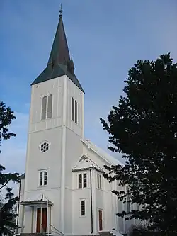 Sortland Church (Norwegian: Sortland kirke) is a parish church of the Church of Norway in Sortland Municipality in Nordland county, Norway. It is located in the town of Sortland. It is one of the three churches for the Sortland parish which is part of the Vesterålen prosti (deanery) in the Diocese of Sør-Hålogaland. The white, wooden, neo-Gothic church was built in a cruciform style in 1901 using plans drawn up by the architects Carl Julius Bergstrøm and Karl Norum. The church seats about 696 people.[1][2]