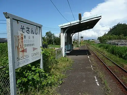 Sosanji Station (曽山寺駅, Sosanji-eki) is a passenger railway station located in the city of Miyazaki City, Miyazaki Prefecture, Japan. It is operated by JR Kyushu and is on the Nichinan Line.[1][2]