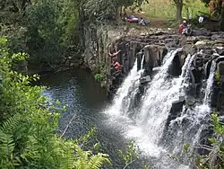 Rochester Falls is a waterfall on the Savanne River. It is famous for the strange rectangular form of its rocky flank.