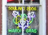 A neon sign commemorating Soulard Mardi Gras 2006