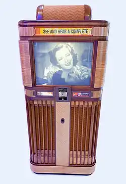 The shorts were originally viewed in public places on some 5,000 "Panorams",[3] coin-operated, 16mm rear projection machines built by the Mills Novelty Company of Chicago. Panorams offered multiple selections of a constantly changing rotation of soundies, and were typically located in public venues like nightclubs, bars, and restaurants. As World War II progressed, soundies also featured patriotic messages and advertisements for war bonds. Hollywood films were censored but soundies weren't, so the films occasionally had daring content like burlesque acts; these were produced to appeal to soldiers on leave.[2]