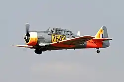 The war ended on 27 July 1953, when the Korean Armistice Agreement was signed. During the first phase of the war, the main task of the squadron Mustangs was the interdiction of enemy supply routes which not only accounted for approximately 61.45% of SAAF combat sorties, but which reached an early peak from January to May 1951 (78% and 82%). A typical interdiction mission was an armed reconnaissance patrol usually undertaken by flights of two or four aircraft armed with two napalm bombs, 127 mm rockets and 12.7 mm machine guns.[43] Later, after the introduction of the Sabres, the squadron was also called on to provide counter-air missions flying as fighter sweeps and interceptions against MiG-15's, but interdiction and close air support remained the primary mission.[43] Losses were 34 SAAF pilots killed, eight taken prisoner (including the future Chief of the Air Force, General D Earp) with 74 Mustangs and 4 Sabres lost.[44] Pilots and men of the squadron received a total of 797 medals including 2 Silver Stars, the highest US military award given to foreigners, 3 Legions of Merit, 55 Distinguished Flying Crosses and 40 Bronze Stars.[45] In recognition of their association with 2 Squadron, the OC of 18th Fighter-Bomber Wing issued a policy directive "that all retreat ceremonies shall be preceded by the introductory bars of the South African national anthem. All personnel will render the honour to this anthem as our own."[44]