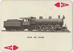In 1910, the Central South African Railways placed one American-built Class 10 4-6-2 Pacific type steam locomotive in service. When the South African Railways classification and renumbering took place in 1912, this locomotive was designated the sole member of Class 10D.[1][2][3][4]