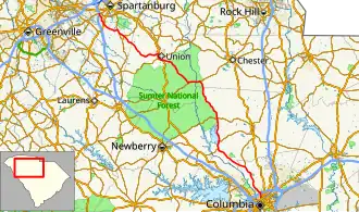 South Carolina Highway 215 (SC 215) is a 96.330-mile (155.028 km) primary state highway in the U.S. state of South Carolina. It serves as an alternate route to Union from either Columbia or Spartanburg.