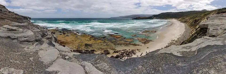 The South Coast Track is a bushwalking track located in the South Coast region of Tasmania, Australia. The 85-kilometre (53 mi) track traverses remote wilderness within the Southwest National Park, part of the Tasmanian Wilderness World Heritage Site, and is managed as a wilderness walk. The Tasmanian Parks & Wildlife Service recommend that experienced bushwalkers can take six-to-eight days to cover the track in one direction.[1]