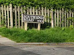 South End Road is located in Hampstead in the London Borough of Camden.[1] It takes its name from the old "South End" of Hampstead. It runs southwards from the junction with East Heath Road and Downshire Hill alongside the southern edge of Hampstead Heath until reaching South End Green where it meets Pond Street and two roads running off east towards Gospel Oak. South Hill Park street runs north towards Hampstead Ponds. Keats Grove runs off the road and forms a triangle with Downshire Hill noted for its surviving Regency architecture.[2]