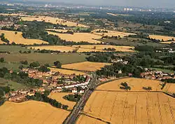 South Mimms parish is the northernmost part of the historic county of Middlesex.[2] The name is thought to derive from the name of a tribe who once inhabited the area.[3] Potters Bar was originally a small settlement in the parish. Potters Bar became the location of the nearest railway station (originally known as Potters Bar and South Mimms) and eventually became much larger.