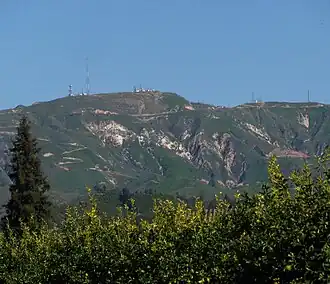 The climate in the region is Mediterranean, with cool, rainy winters and warm, rainless summers, in which the heat is moderated by frequent morning coastal low clouds and fog. Annual precipitation is around 15 inches (380 mm), almost all in the winter, and all in the form of rain, with occasional dustings of snow on the mountaintop in exceptionally cold winter storms. The mean annual temperature is 56 to 60 degrees Fahrenheit; freezes occur rarely.[2]