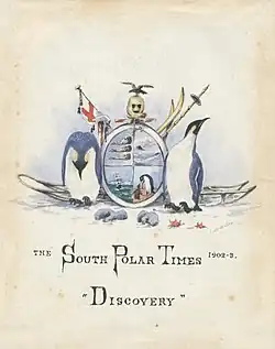 The South Polar Times was a magazine created by the crew of the two Antarctic voyages led by Captain Robert Falcon Scott in the early 20th century: the Discovery Expedition (1901–04), and the Terra Nova Expedition (1910–13). It documents first-hand many professional and personal aspects of Antarctic exploration,[1] and highlights some of the physical and psychological hardships the men suffered. It was established in part to entertain the crew, all of whom were offered the opportunity to contribute. The magazine combines watercolour paintings, cartoons, and photographs with weather reports, essays, and other colloquial and scientific observations.