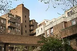 South Quay Estate is designed in a modernist style, ranging from four to eight storeys, chiefly in dark red brick with a wood-clad effect at higher levels. Properties comprise single floor flats and duplex maisonettes of one, two and three-bedrooms. The character of the buildings are largely in keeping with those surrounding the Docks. Whilst reflecting their origin at the end of the modernist architectural period, the use of brick is in strong contrast to the concrete of high-rise, Brutalist architecture that typified social housing in post-war Britain, coupled with a wood-cladding effect popular in the late 1960s and 1970s. This also contrasts with the circles, triangles and pale colours of the postmodernist style that came to the fore from the 1980s onwards and so now seem dated compared to most later Docklands developments - such as the adjacent City Quay development of the 1990s.