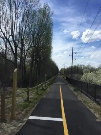 For nearly 30 years, the trail languished, delayed by environmental concerns, local opposition and budget constraints. First the trail was delayed by the reluctance of owners to sell the rail bed, which by then had passed back into the hands of residents, to the county for a trail. Then money became an issue when, in 1992 limited by a cap on tax revenue, the County Council voted to pull $270,000 from the trail project to repair the Lake Waterford dam in Pasadena.[5] Though they planned to restore the funding in 1994 and 1995 public opposition became an issue. In 1994, with formal plans still five years away, the county considered allocating $660,000 for planning and land acquisition; but local residents began to express cost concerns and fear of crime related to a connection to Millersville Elementary. At the same time, the project managers had to petition the Army Corps of Engineers for permission to use a portion of the rail bed that passed through what had since become wetlands.[6][7] In 2001 the trail, this time the planned section along General's Highway, was facing public opposition because it would run through some people's front yards.[8] In 2008, the County voted to redirect Program Open Space funding intended for the trail and other park projects towards the installation of artificial turf fields at county high school stadiums, further delaying the project.[9]