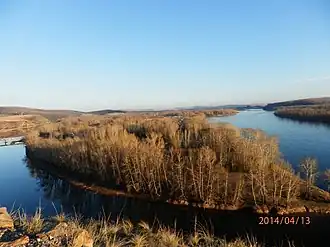 The ecoregion is a thin band of lowland terrain, 700 kilometres (430 mi) long, stretching from Tomsk in the west, to the east of Krasnoyarsk in southern Siberia. On the western edge there is a north-south extension that follows the Tom River in the Kuznetsk Basin. In the middle is another extension, covering a low area along the Yenisei River and some of its tributaries; this area is known as the Minusinsk Hollow.[1] To the west is the West Siberian broadleaf and mixed forests ecoregion, which is now mostly cultivated agricultural land.