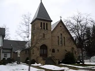 South Street Historic District is a national historic district located at Cuba in Allegany County, New York. The district consists of 12 acres (49,000 m2) and includes 48 contributing buildings. It encompasses the village of Cuba's most distinguished residential enclave. The structures date from about 1840 to about 1938-1939 and reflect a variety of popular architectural styles.[2] The district consists of 37 residential properties dating from 1840 to 1940 and three churches : First Baptist and Christ Episcopal, 1871, and Our Lady of Angels Roman Catholic, 1926. The district begins at the First Baptist Church and ends at the railroad underpass at the south end.