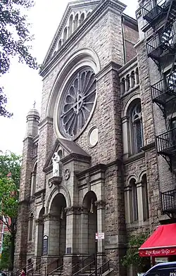 Originally home to a merchant class in the early 19th century, by the late 19th century the area was dominated by immigrants, largely from Italy. The Italian immigrants built their own distinct parishes, to distinguish them not only from their Protestant neighbors on the north side of Washington Square Park (in Greenwich Village), but their Irish neighbors in the South Village. By the late 19th century, Italians outnumbered the Irish in the area, but were not preeminent in the local church hierarchy, especially the parish of St. Patrick's, which covered this area. In response, the Italian-American communities of the South Village built Our Lady of Pompeii and St. Anthony of Padua churches, which remain the area's defining religious edifices.[6] The Italian-American community was very poor, and its parish churches often had to be subsidized by third parties; Our Lady of Pompeii Church was the personal charity of a woman named Annie Leary who is buried in the crypt of Old St. Patrick's Cathedral.[7]