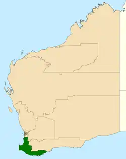 - ^ Western Australian Electoral Commission (WAEC) (29 October 2007). "South West Region Profile". Retrieved 22 October 2008.