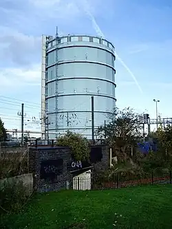 A major gas works manufacturing town gas was located between the railway and the canal. In 1932 a large gasholder was built, becoming a local landmark until its demolition in 2019. Painted on the north east side of the gasholder are the large letters 'LH' and an arrow to assist pilots locate Heathrow Airport's (now closed) runway 23 when making visual approaches. The letters were painted in the mid-1960s after a number of pilots became confused between Heathrow and the nearby RAF Northolt (which has a similar, though smaller, gasholder under its approach at Harrow). Northolt has a much shorter runway and is not suitable for very large aircraft although one Boeing 707 did land at Northolt by mistake[39] and a number of other aircraft had to be warned off by air traffic control at the last minute. Since town gas production ceased in the 1970s with the arrival of natural gas piped from the North Sea, much of the 36 ha (89 acres) site has been vacant, due to limited road access and remaining gas infrastructure.
