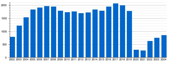 | 2013 | 1,722,758 | 40,501 | 133 | |