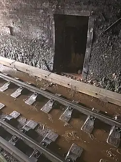 The tunnel remained in use fulfilling its intended purpose until, in the 1960s, the invert (tunnel base) was found to be rising at one point.[4] Following this and concerns over ground movements in the vicinity of the tunnel extensive remedial work was undertaken between November 1964 and March 1965, with single line working through the tunnel allowing traffic to continue.[8] During this work the heading was reopened between the railway tunnel and the canal tunnel in 1965. This revealed that the brickwork within was still in good condition at that point, but that the tunnel was largely filled with rubble as reported in 1847.