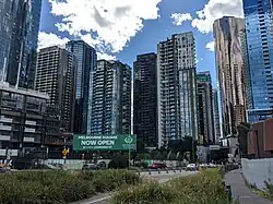 An increasing number of corporations began opening their offices in Southbank. PwC relocated its office from Spring Street to Freshwater Place in 2005. JB Hi-Fi relocated its corporate headquarters from Chadstone Shopping Centre to Southgate in 2020, after its acquisition of The Good Guys.[3] Other names on the list include Fujitsu, and Foster's. In May 2008 the Victorian Government created the new suburb place and name South Wharf, in the western end of Southbank (now encompassing the Melbourne Convention & Exhibition Centre and the Polly Woodside National Trust museum).[4] South Wharf is home to several large apartment buildings, along with a hotel and a large shopping centre precinct. Southbank and South Wharf share the same postcode (3006).[5]