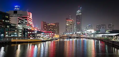 Southbank is an inner-city suburb in Melbourne, Victoria, Australia, 1 km (0.62 mi) south of the Melbourne central business district, located within the Cities of Melbourne and Port Phillip local government areas. Southbank recorded a population of 22,631 at the 2021 census.[1]