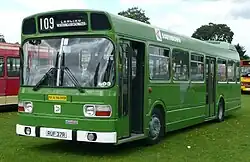 It was during the late 1950s and 1960s that Southdown purchased many of the vehicle types most commonly associated with the company, notably the Leyland Titan PD3 'Queen Mary' vehicles, of which 285 were delivered with Northern Counties bodywork.[12] Southdown did not take deliveries of rear engined double deck vehicles until 1970, when it purchased a batch of ten Daimler Fleetlines with Northern Counties bodywork for delivery to Brighton & Hove,[13] as well as a number of Bristol VRTs with Eastern Coach Works (ECW) bodies painted in green and cream livery.[14] A further batch of Fleetlines with ECW bodywork were delivered in 1972.