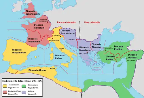 Roman Empire. In yellow the south-west of Europe, and in violet the south-east.