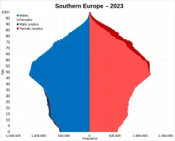 Population pyramid of southern Europe in 2023 (UN geoscheme classification)