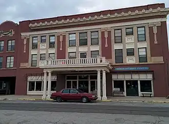 The Southern Hotel is a three-story Classical Revival structure located in El Reno, Oklahoma. Listed on the National Register of Historic Places in 1978, the building was constructed in 1909 as a hotel for passengers traveling the Rock Island Railroad as well as travelers along the Oklahoma Railway Company's interurban line to Oklahoma City. When it was built, the Southern Hotel was one of the most opulent and extravagant hotels in Oklahoma.[3]