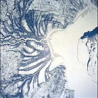 ![]() Satellite view of the frozen Hannah Bay and Harricana River | |