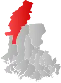 About 80% of the population of the two counties live along the coast, which has the warmest climate in Norway as well as offering quick access to the rich fishing grounds and maritime routes of the Skagerrak.[2] In Southern Norway there are also a number of less populated inland municipalities. The list of the municipalities in Southern Norway are: