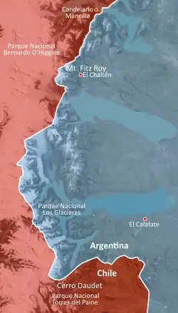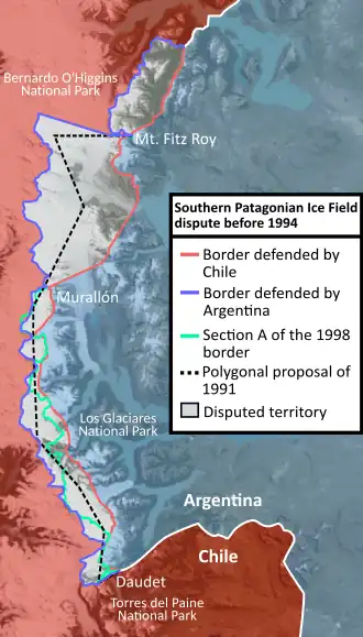 - ^ Brunet-Jailly, Emmanuel (2015). "Southern Patagonian ice field: positional boundary line dispute between Argentina and Chile, from the initial boundary settlement of 1881 to contemporary issues/challenges". Border Disputes: A Global Encyclopedia [3 volumes]: A Global Encyclopedia (2 ed.). California: ABC-CLIO. ISBN 9781610690249.