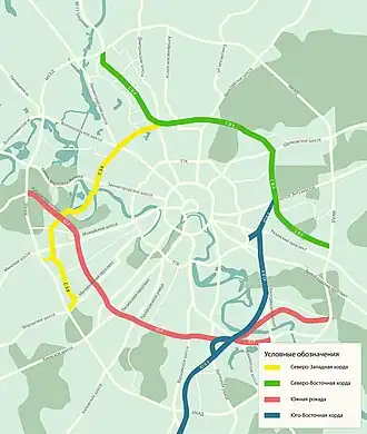 ![]() The Southern Rocade (pink) is a part of Moscow Chord Ring. | |
