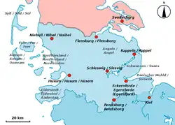 {{cite web}}: CS1 maint: numeric names: authors list (link) - ^ German, Troels Fink: "Geschichte des schleswigschen Grenzlandes" Publisher: Munksgaard, Copenhagen 1958, pages 178-192.
