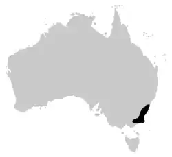 This species is associated with streams and creeks in rainforests, as well as wet or dry sclerophyll forests. It is rarely found away from running water.