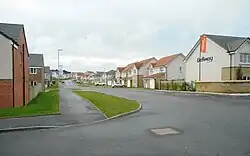 Land to the east of B&Q - directly adjacent to the motorway - was designated for further retail for some years, but failed to attract investors for this use (likely due in part to the busy Silverburn Centre at the next junction north) so was reallocated for new housing in the late 2010s.[9][10] At that time another residential development between the existing Southpark neighbourhood and the Darnley Mains site, Glenmill (320 houses) was also constructed by Persimmon Homes and Bellway.[11]