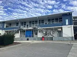 Some changes to the surviving 1950s buildings have been made. Alterations to Block E were made in 1988–9 reconfiguring the upper level layout to three classrooms and converting the then science laboratories to general classrooms, and refurbishing the ground floor drama room (former student recreation area).[76][77][78][79] In 2001 the lower level of Block E was reconfigured for a multi-media room.[80] Changes to Block B in 2001 included creation of computer labs (former commercial room and classroom) on the upper level, new aluminium windows, and the replacement of two doors. In 2012 a concrete switchback ramp for disabled access was added in the NE corner of Block B.[80][81] The brick walls and concrete plinths of the lower levels of both Blocks B and E have been painted.[1]