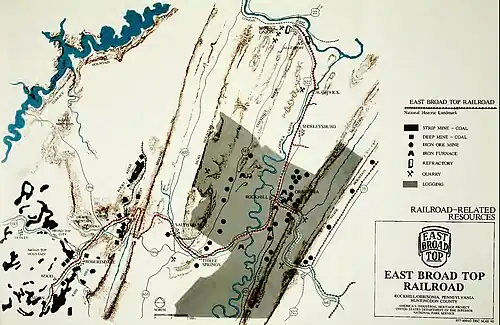 - ^ a b c d Study of Alternatives: East Broad Top Railroad: America's Industrial Heritage Project, Southwestern Pennsylvania: draft, 1990 National Park Service Accessed on October 8, 2017. pdf