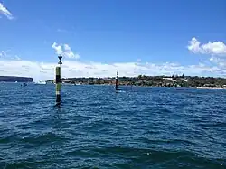 Sow and Pigs Reef is a rocky reef in Sydney Harbour, New South Wales, Australia.[1][2][3] The reef is situated on the eastern side of the main shipping channel between Middle Head and South Head. It is 150 metres (490 ft) long and up to 70 metres (230 ft) wide. Originally the reef was exposed and resembled a sow and her litter. Explosives were used to reduce the reef, however, and now the reef is only exposed at a very low tide.[4][5] A number of ships have been wrecked or damaged after hitting the reef.[6] The D'harawal name for the Sow and Pigs Reef is Boora Birra.[7]