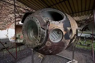 ![]() ![]() ![]() ![]() ![]() The Soyuz 30 capsule, Hermaszewski's spacesuits and personal items, as well as memorabilia from the flight on display at the Museum of Polish Military Technology. | |