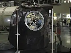 ![]() The Soyuz TM-19 landing capsule on display at the Technik Museum Speyer | |