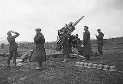 The rebels termed themselves Nacionales, normally translated "Nationalists", although the former implies "true Spaniards" rather than a nationalistic cause.[130] The result of the coup was a nationalist area of control containing 11 million of Spain's population of 25 million.[131] The Nationalists had secured the support of around half of Spain's territorial army, some 60,000 men, joined by the Army of Africa, made up of 35,000 men,[132] and just under half of Spain's militaristic police forces, the Assault Guards, the Civil Guards, and the Carabineers.[133] Republicans controlled under half of the rifles and about a third of both machine guns and artillery pieces.[134]