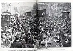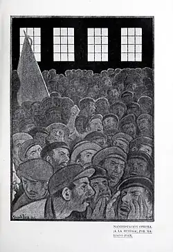 The growth of the economy of neutral Spain in World War I strengthened the working class and the CNT. In 1917-18 there was an increase in strike activity. The government banned the "Soli" (Solidaridad Obrera, official organ of the confederation), closed workers' centers and arrested leaders. In 1919 there was a strike at the electric company "La Canadenca", which spread and produced a general strike in Catalan industry and the countryside. Partial victory of the CNT, after a hard fight. And the mobilization was important: on March 24, 1919 the CNT again called a general strike to free the prisoners of the previous strike. There were three weeks of social struggle in Barcelona and other cities.[11]