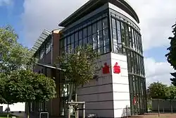 As early as 1825, the savings bank moved from the orphanage to a new premise at Breite Straße 16. In 1912, the bank moved into the newly built commercial building Breite Straße 18 next-door.[8] At this point, in the 1965 built house, the seat of the Sparkasse is still today. In 1937 the Sparkasse zu Lübeck, which at that time still carried the name Spar- und Anleihe-Kasse zu Lübeck , took over the Sparkasse in Travemünde. The name Sparkasse zu Lübeck was adopted by the bank in 1958.[5] In 2004, the bank's banking operations were spun off the foundation and transferred to a public limited company, today's Sparkasse zu Lübeck AG.[8] The foundation that had once supported the Sparkasse became a nonprofit organization, the Gemeinnützige Sparkassenstiftung zu Lübeck, holding the majority in the Sparkasse zu Lübeck AG with 74%.[5] From its interest and dividends, the foundation supports charitable and benevolent projects in Lübeck with millions each year. The remaining shares are held by Haspa Finanzholding in Hamburg.