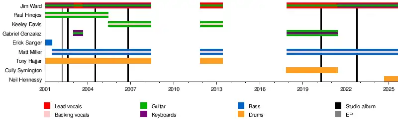 In 2005, after pulling the band off the road mid-tour, Ward said he needed to re-group. "I walked out in the middle of a tour.... I needed to get away from everything and everyone. I wasn't enjoying myself at all, and I didn't feel my life or the band was where I wanted it to be... I needed to step back and reassess everything." For two months, he retreated to his home without speaking to anyone in his professional life. In an article with PE.com, Ward said, "When I left, I honestly didn't know if I was going to continue the band or not, so I told everyone to pursue whatever they wanted,". During that time, Hinojos left to join The Mars Volta as their new secondary guitarist and sound manipulator, filling the void left by Jeremy Ward's death. Hinojos was replaced by Keeley Davis.