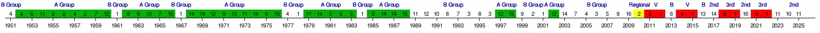 | 2009–10 | IV | A Regional Group | 2 | 18 | 5 | 3 | 75 | 26 | 59 | not qualified | |