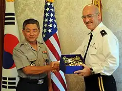 The members of the ROK Special Forces Brigades train and work in close partnership with members of the United States Special Operations Forces in defense of the Republic of Korea. U.S. SOF in Korea are under the command and control of Special Operations Command Korea (SOCKOR) which is a sub-unified command assigned under the Combatant Command (COCOM) of United States Special Operations Command (USSOCOM) and further delegated to the Operational Command of the United States Forces Korea (USFK) Commander.[5]