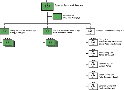 - Malaysia Coast Guard Special Action Team (MCG-SAT) (Malay: Pasukan Tindakan Khas Maritim Malaysia)