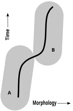 In palaeontology, with only comparative anatomy (morphology) and histology[55] from fossils as evidence, the concept of a chronospecies can be applied. During anagenesis (evolution, not necessarily involving branching), some palaeontologists seek to identify a sequence of species, each one derived from the phyletically extinct one before through continuous, slow and more or less uniform change. In such a time sequence, some palaeontologists assess how much change is required for a morphologically distinct form to be considered a different species from its ancestors.[56][57][58][59]