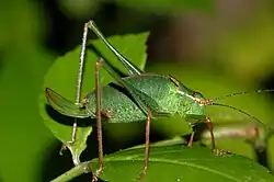 The speckled bush-cricket (Leptophyes punctatissima) is a flightless species of bush-cricket belonging to the family Tettigoniidae. The species was originally described as Locusta punctatissima in 1792.[1][3]