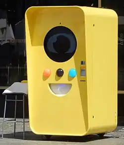 A Snapbot is a pop-up vending machine developed and manufactured by Snap Inc.[24] It was designed for the distribution of Spectacles. Snapbot first appeared on November 10, 2016, in Venice, Los Angeles, and was then located in Big Sur, California. Snapbot was relocated to different locations in the U.S. for several months after the release of Spectacles.[25][26] In February 2017, Snapchat began selling Spectacles online.[25]